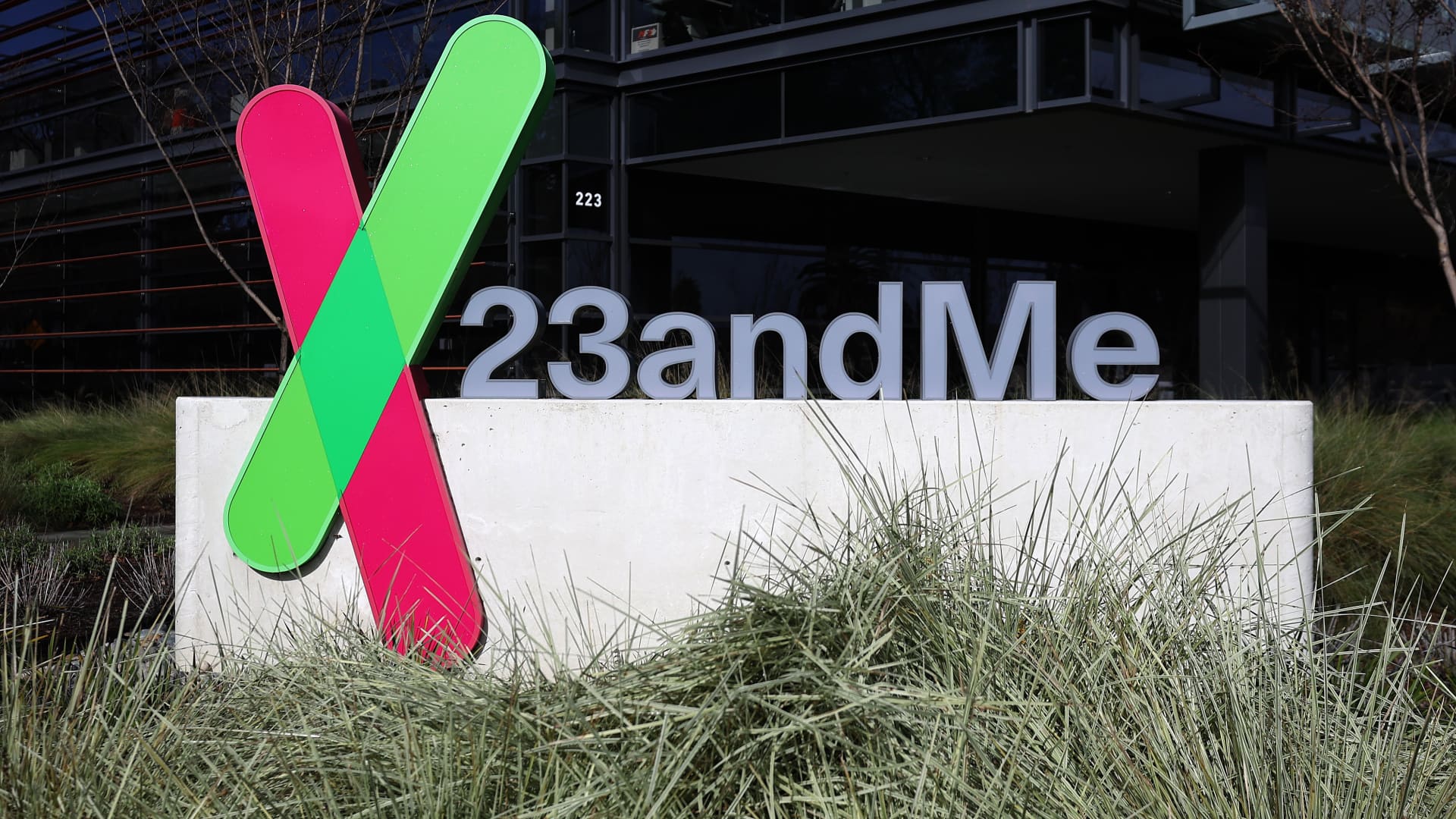 A sign stands in front of 23andMe's headquarters in Sunnyvale, California on February 1, 2024.