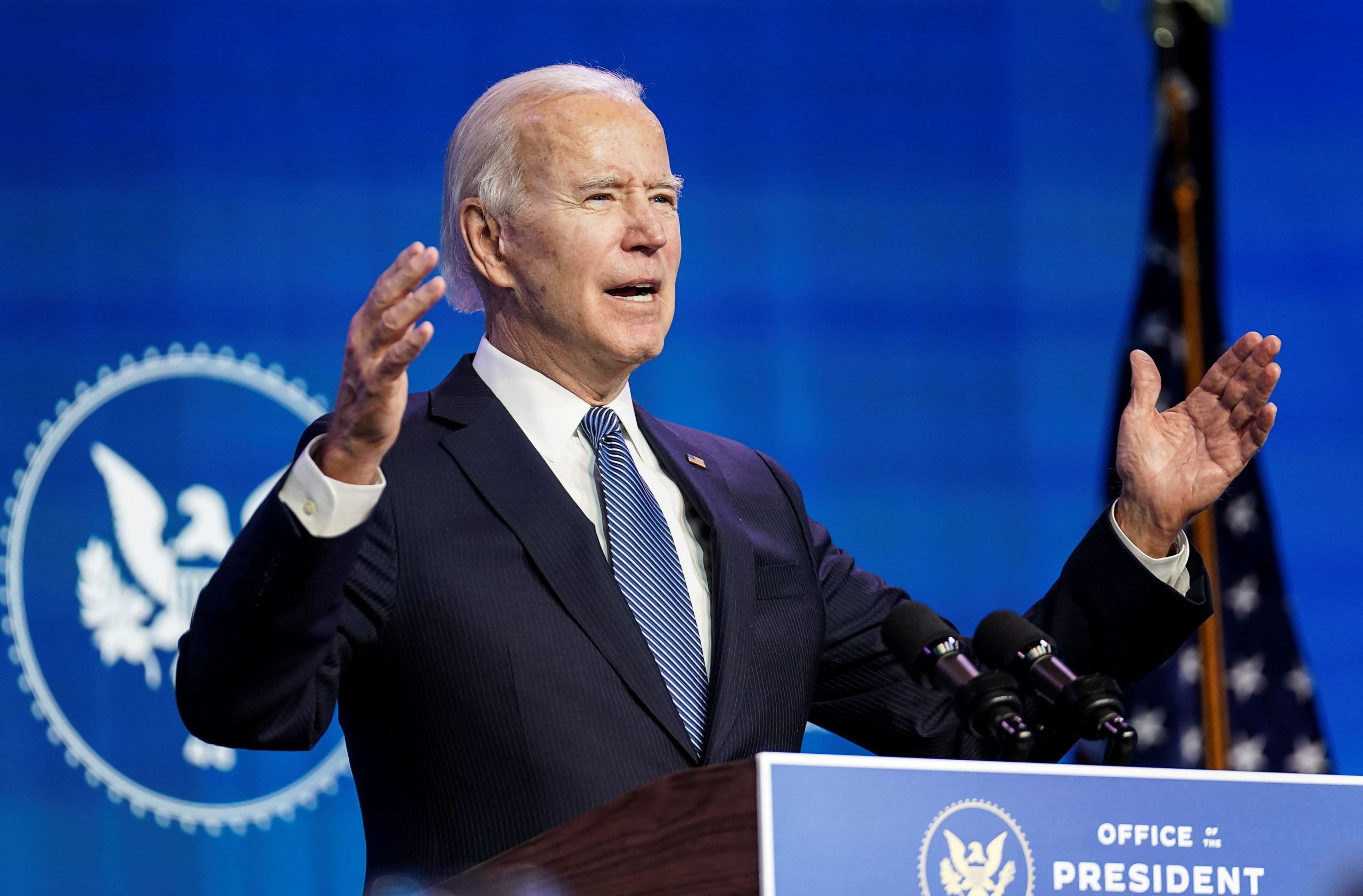 U.S. President-elect Joe Biden speaks as he announces his Justice Department nominees at his interim headquarters in Wilmington, Delaware, United States, on January 7, 2020.