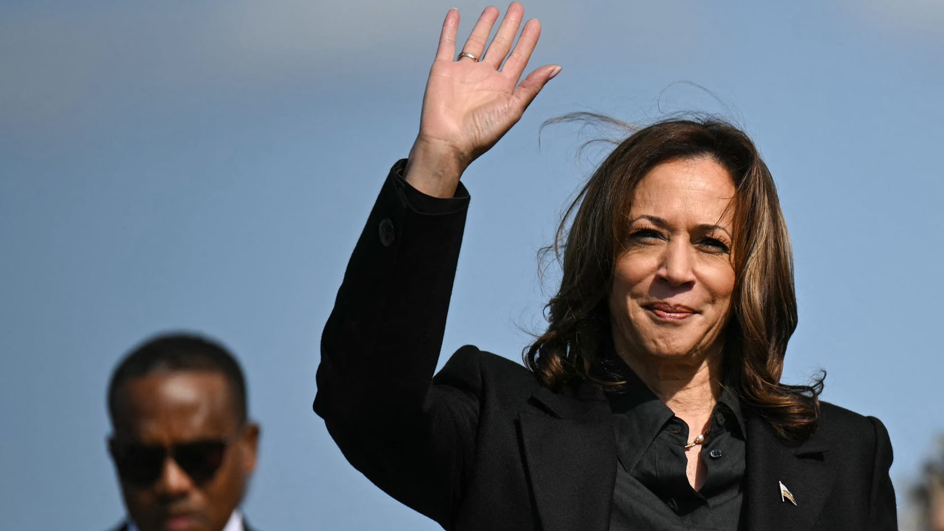 U.S. Vice President and Democratic presidential candidate Kamala Harris boards Air Force Two at John Murtha Johnstown-Cambria Airport in Johnstown, Pennsylvania, on September 13, 2024.