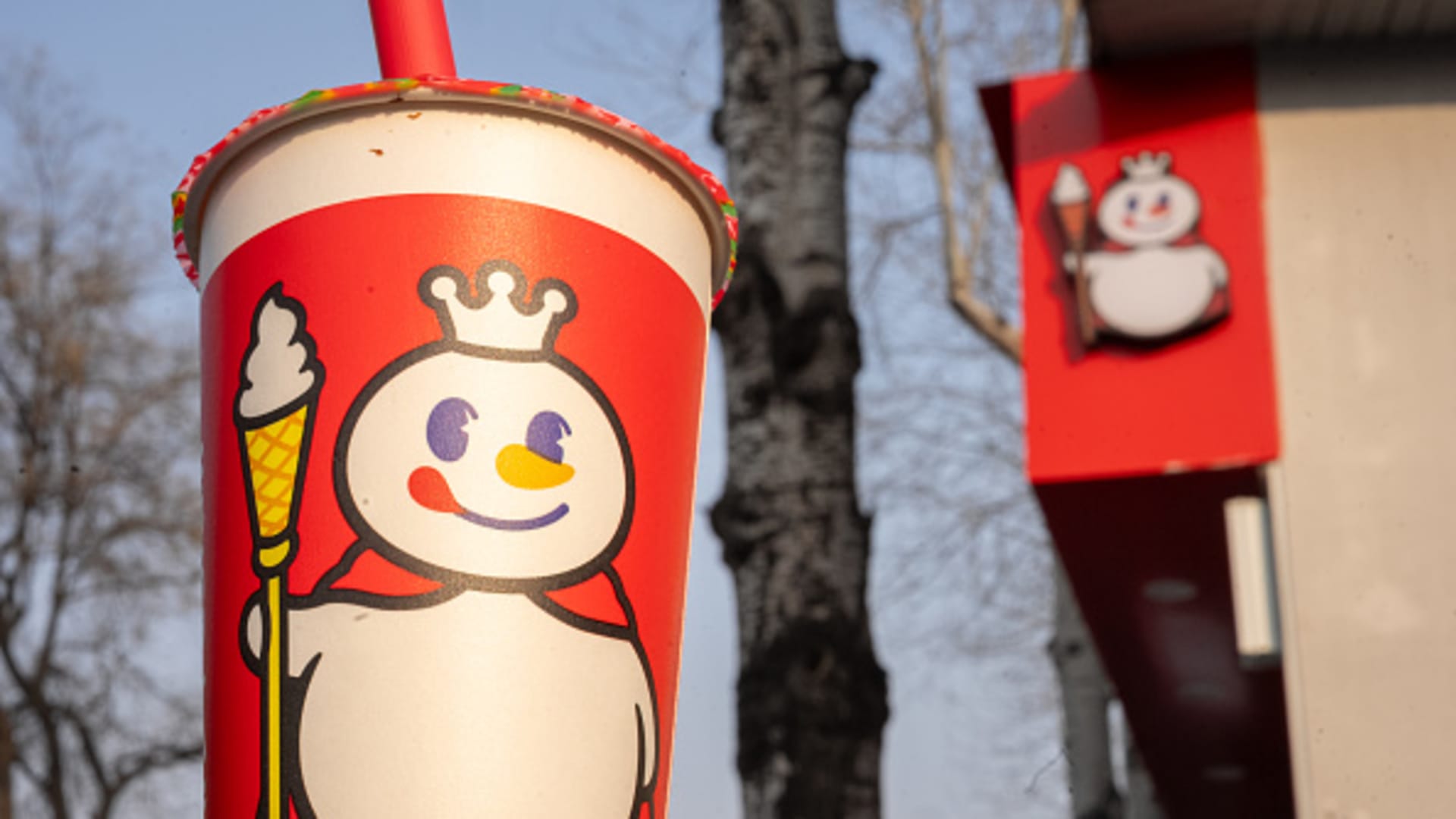 The Snow King mascot on a cup in a mixed business in Beijing, China, on Thursday, February 27, 2025.
