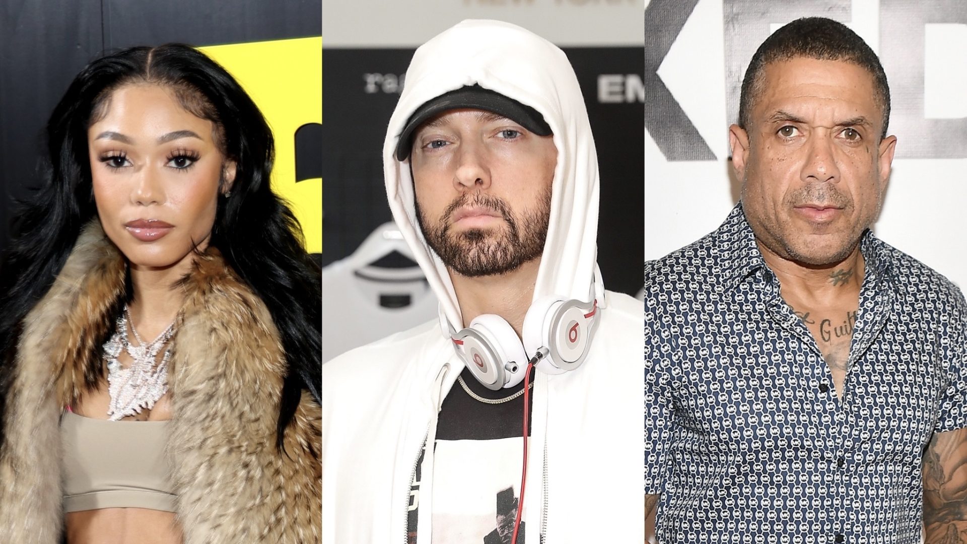 Before concluding his thoughts, Eminem also rapped that his potential feature with Benzino’s daughter Coi Leray “is in the toilet.”
