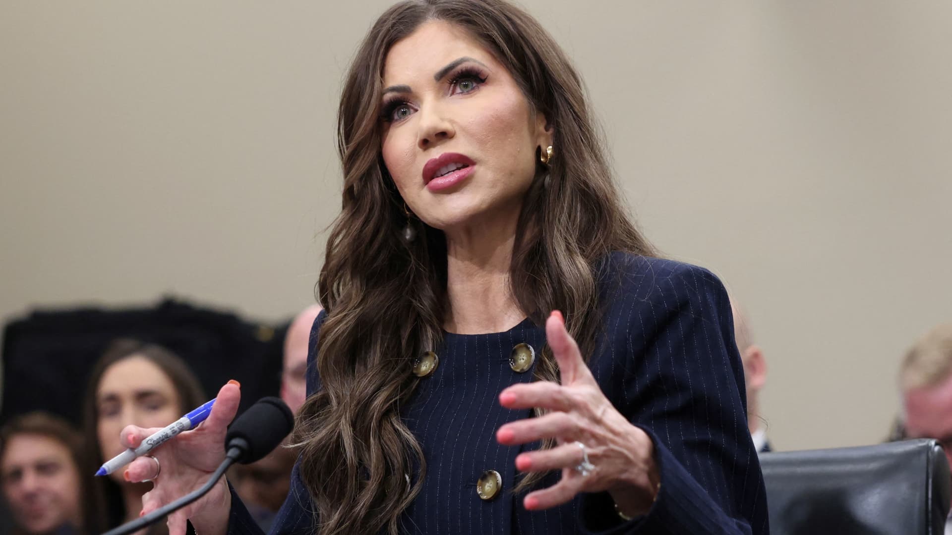 The US Secretary for Homeland Security (DHS) Kristi Noem testifies to the Household Committee for Home Introduction to Monitoring of the Ministry of Homeland Security at the Capitol Hill in Washington, DC, USA, May 6, 2025.