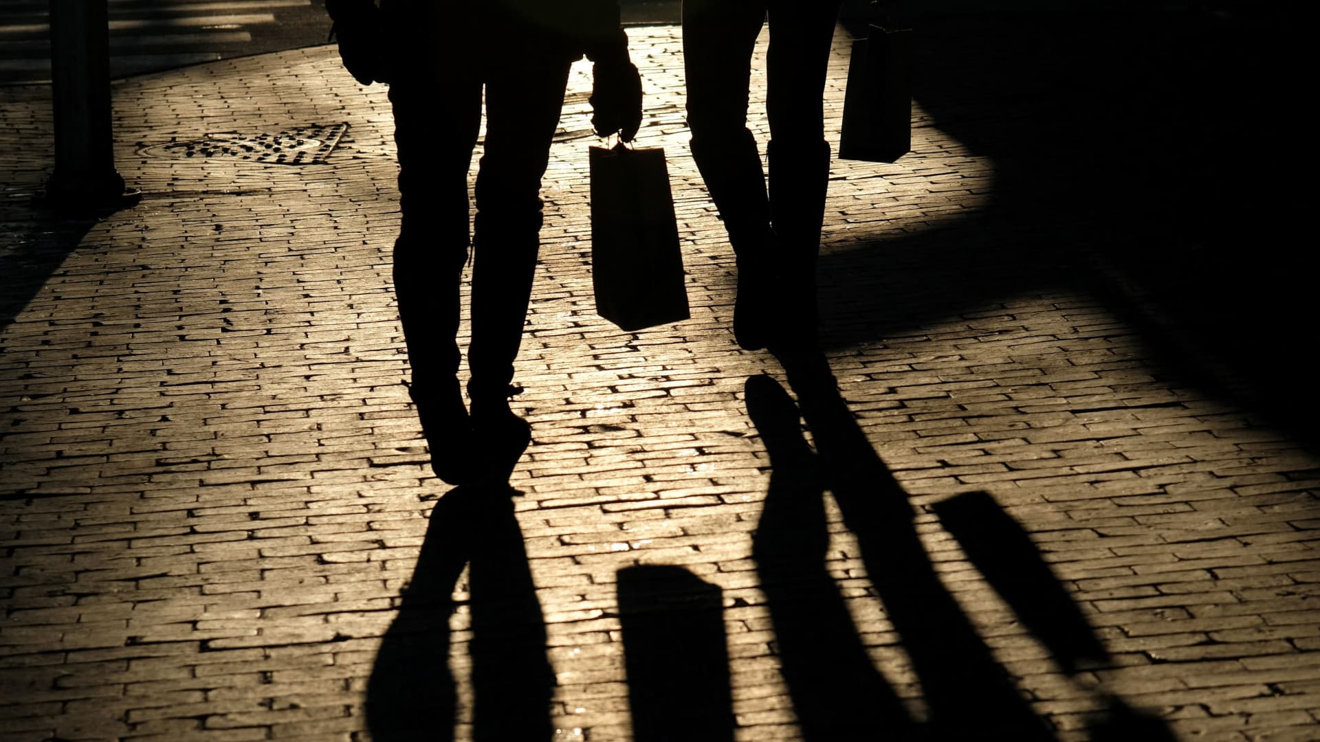 Buyers gave shadows when they wore their bags along the waterfront in Portland, Maine, USA on December 26, 2024.