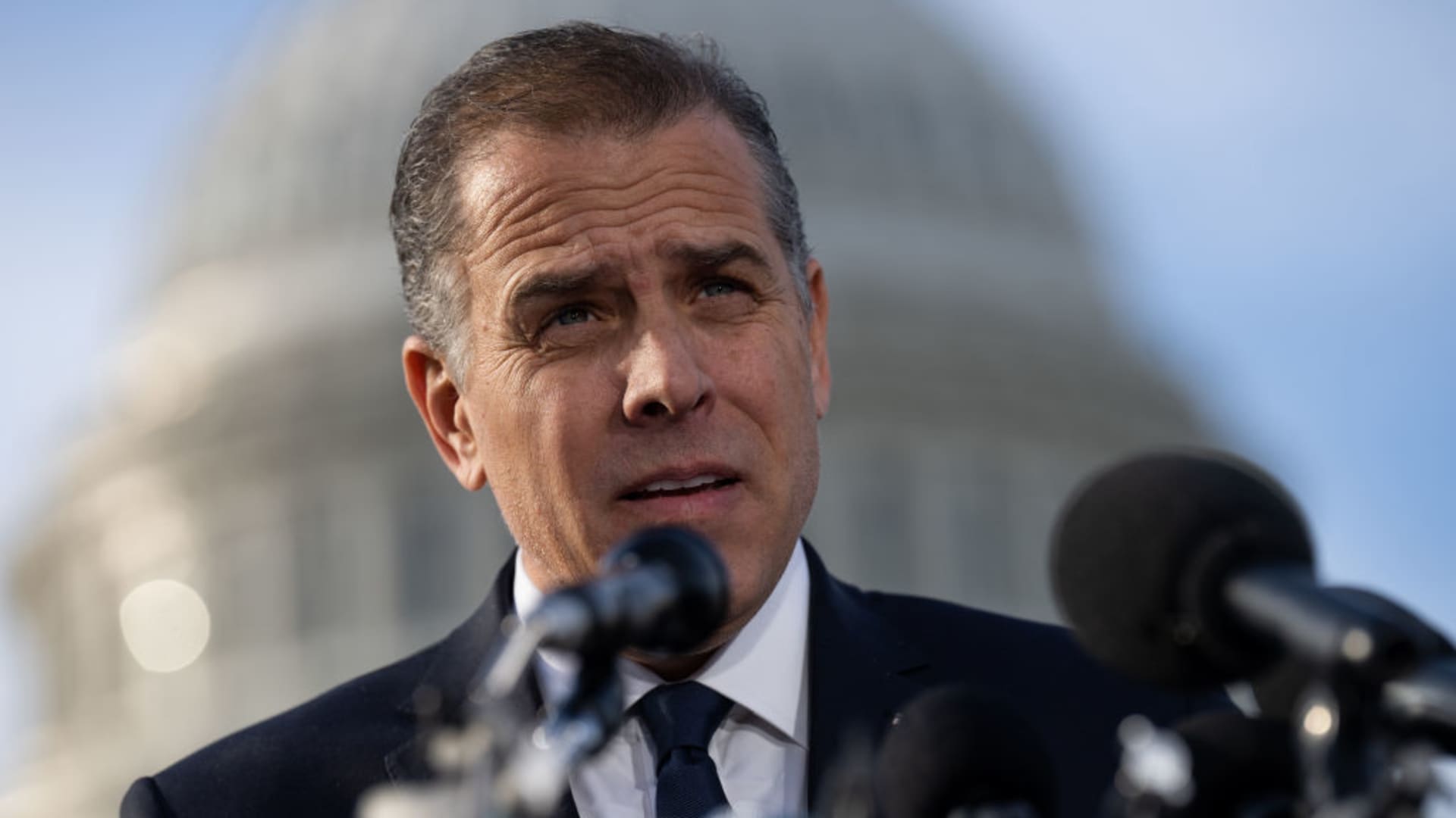 Hunter Biden, son of President Joe Biden, makes a statement to the press outside the U.S. Capitol about testifying publicly to the House Oversight and Accountability Committee, on Dec. 13, 2023.