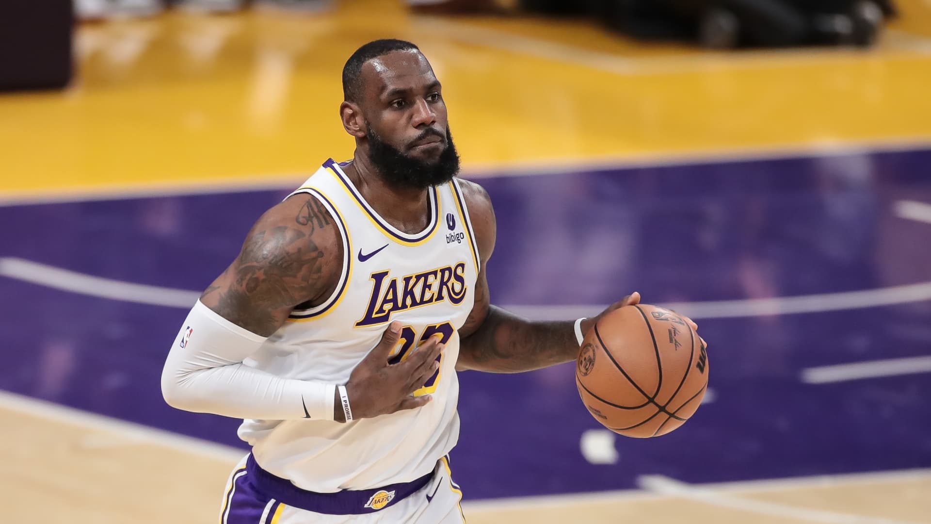 Los Angeles Lakers forward LeBron James, #23, during the NBA game between the Los Angeles Clippers and the Los Angeles Lakers at Crypto.com Arena in Los Angeles on Jan. 7, 2024.
