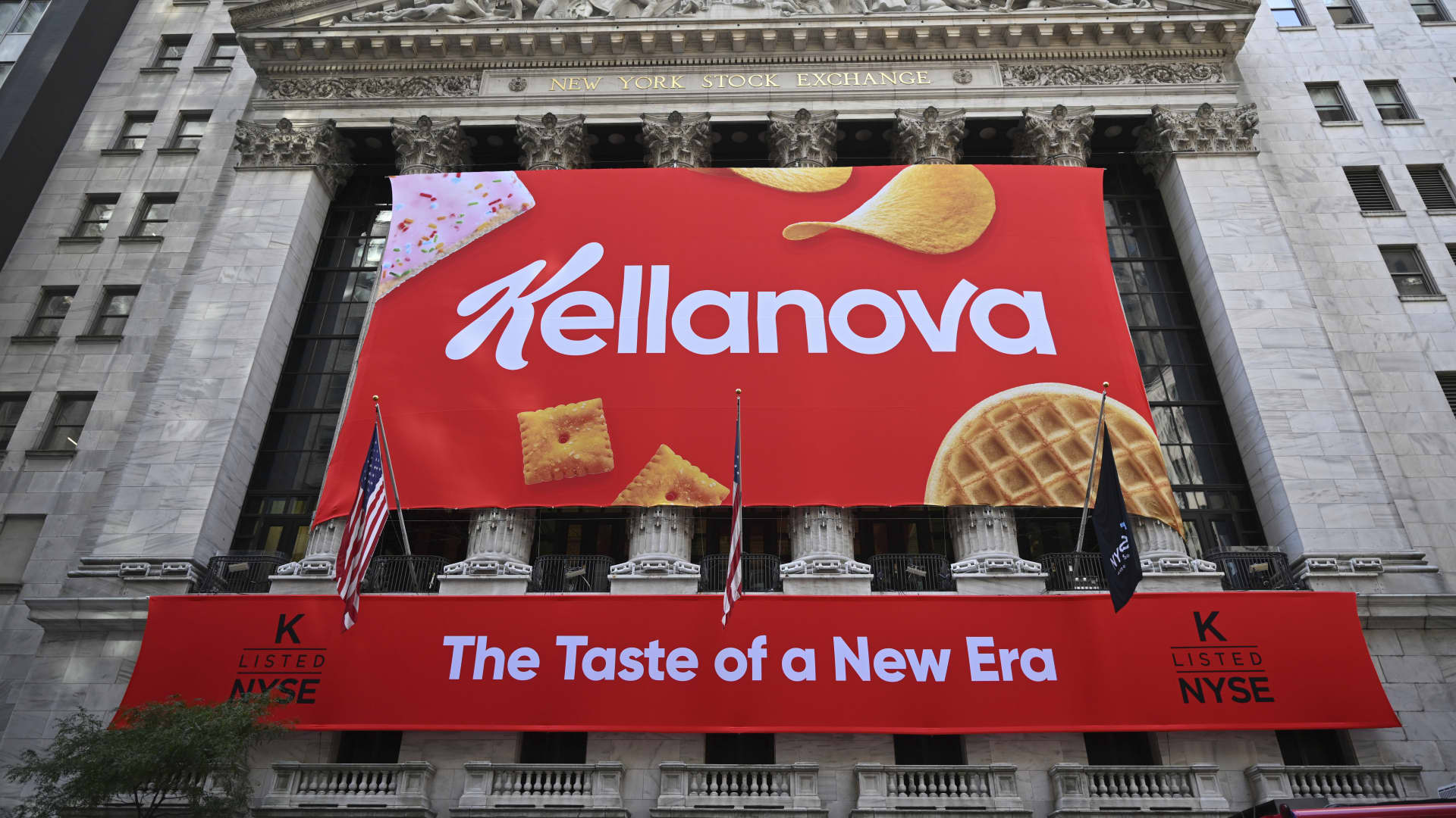 Signage for Kellanova in front of the New York Stock Exchange on September 5, 2023.