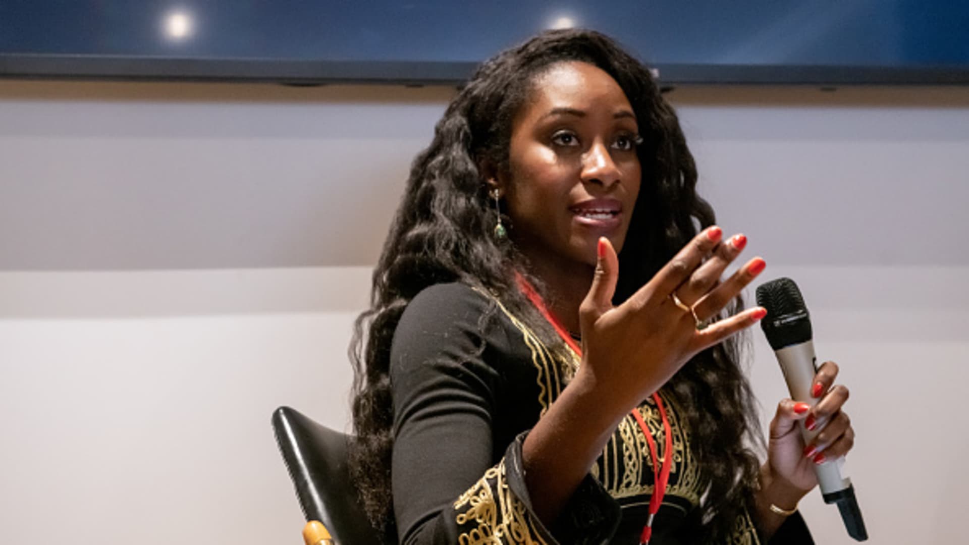 Washington Post editor Karen Attiah leads a discussion on Saudi hacking techniques at the 2019 Oslo Freedom Forum in Oslo, Norway, on May 28, 2019.