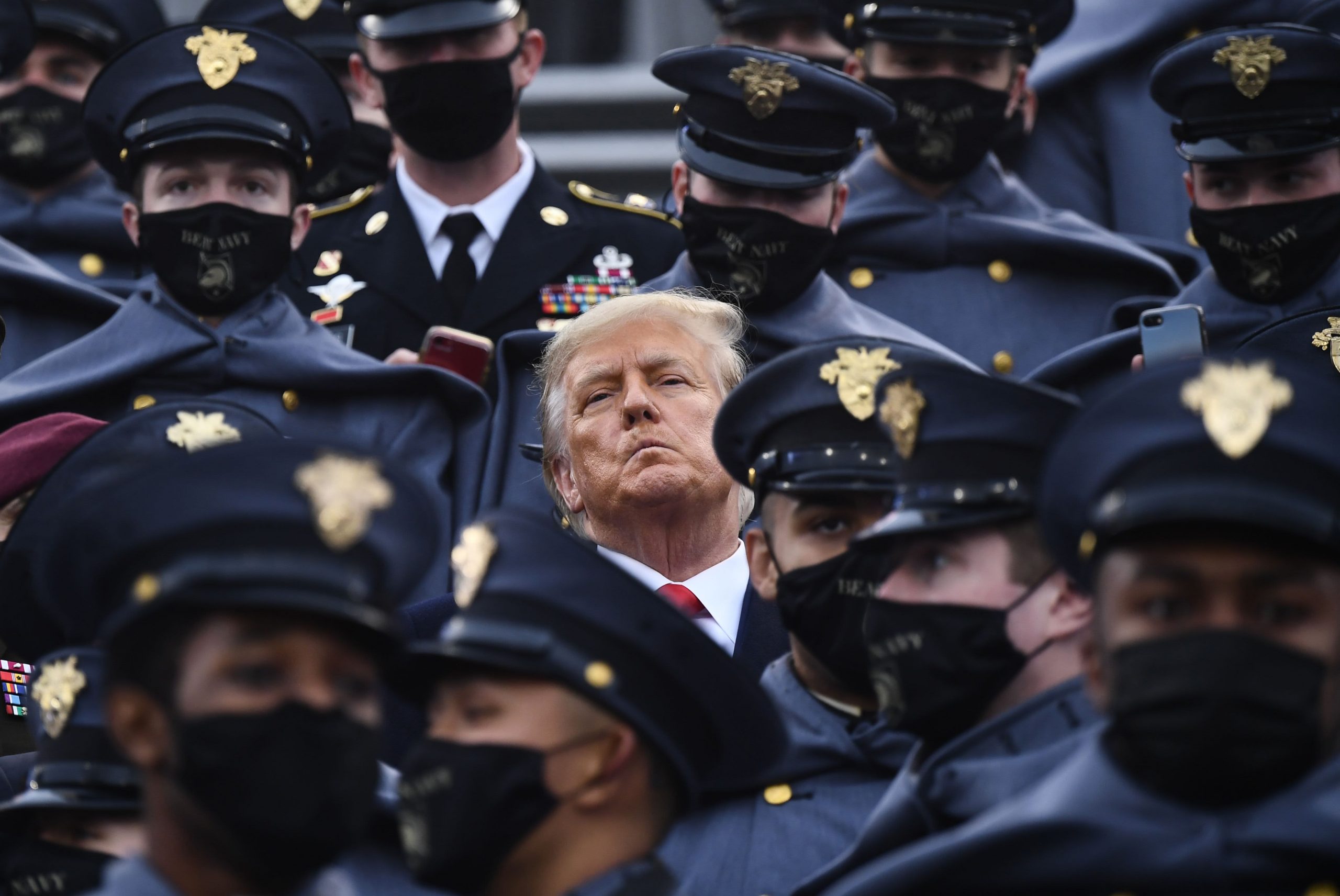 U.S. President Trump stands among U.S. Army cadets as he participates in the Army-Navy annual college football game at Michie Stadium in West Point, New York, United States on December 12, 2020.